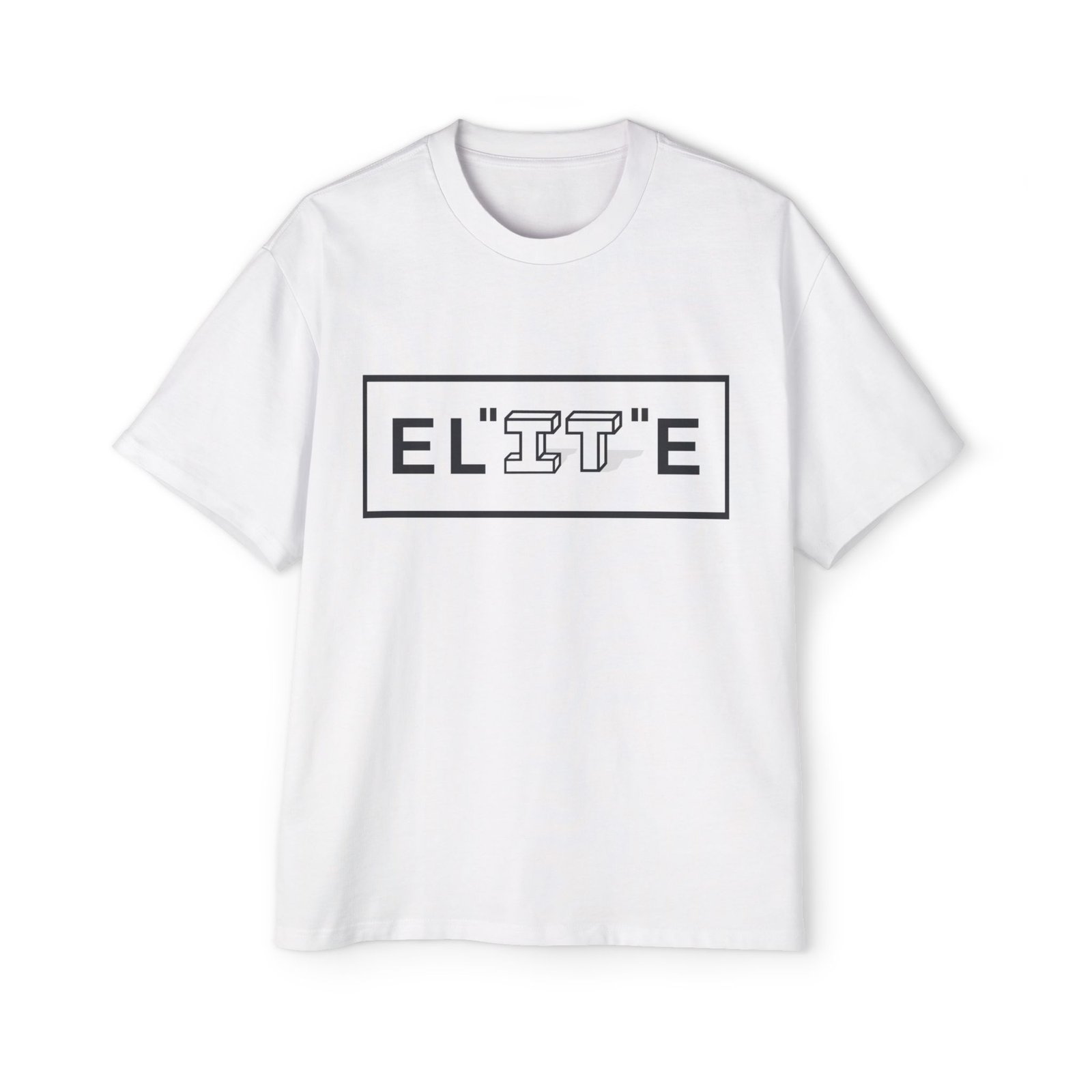 This oversized tee brings quiet confidence to everyday wear. The bold boxed ‘ELITE’ graphic reads sharp and minimal, a subtle flex for people who value craft over noise. The roomy cut and dropped shoulders create a relaxed silhouette that layers easily — throw it over a hoodie or wear it alone on warmer days. The medium-heavy carded cotton weight holds its shape and the double-stitched hems stand up to repeated wear and washes. It feels substantial without being stiff, breaking in gently to the wearer’s rhythm. Wear it to low-key meetups, studio sessions, or when you want an elevated casual look that feels intentional.