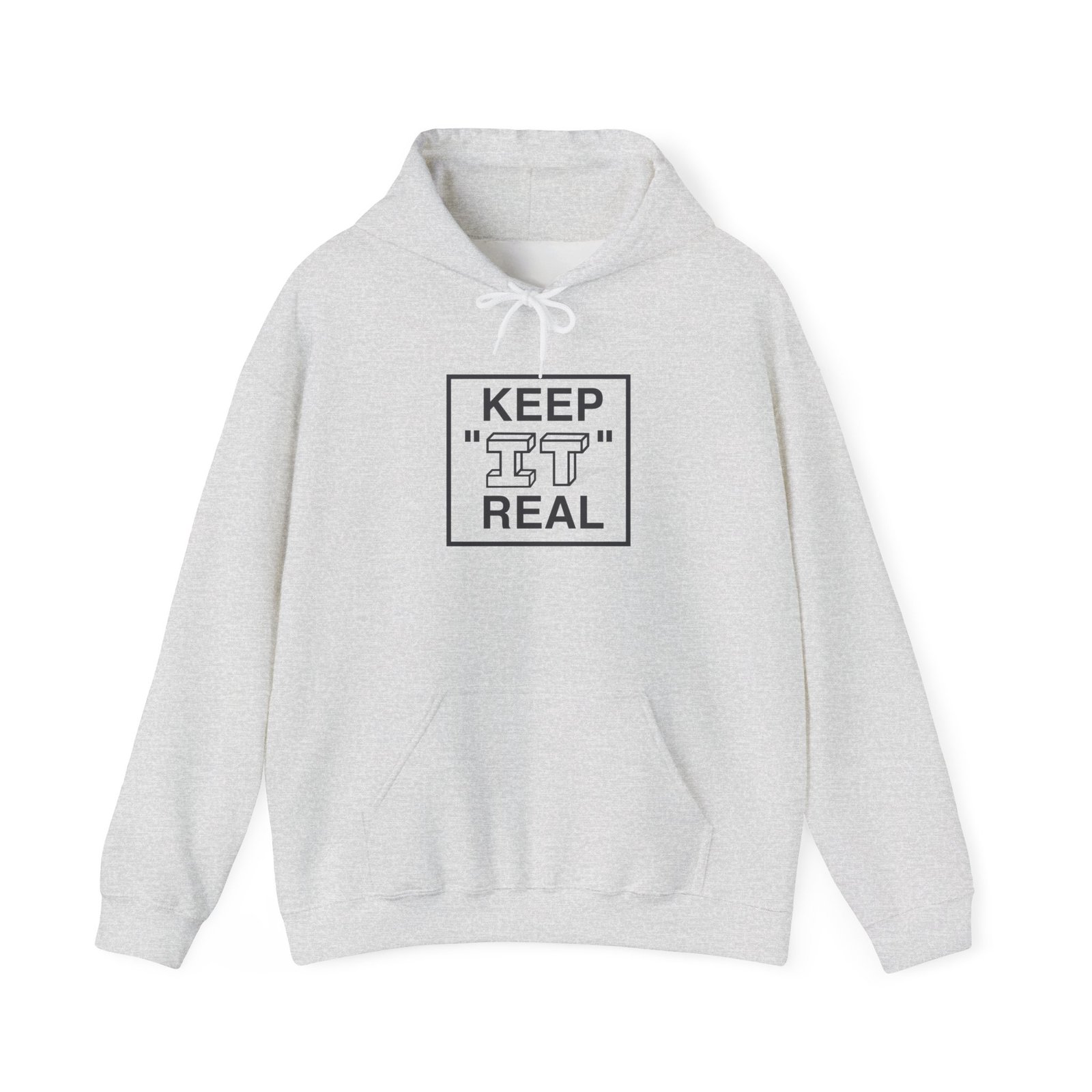 A clean, cozy hoodie that speaks with quiet confidence. Soft midweight fleece cushions you on cool mornings while the color-matched drawcord and double-lined hood keep the silhouette tidy. The minimalist boxed front graphic — ‘KEEP “IT” REAL’ — reads like a tongue-in-cheek reminder for anyone who values honesty and low-key style. The roomy kangaroo pocket warms hands and tucks essentials, while durable DTF/DTG printing ensures the artwork stays crisp wash after wash. Wear it to late-night walks, slow coffee runs, or when you want an easy layer that says more by saying less.
